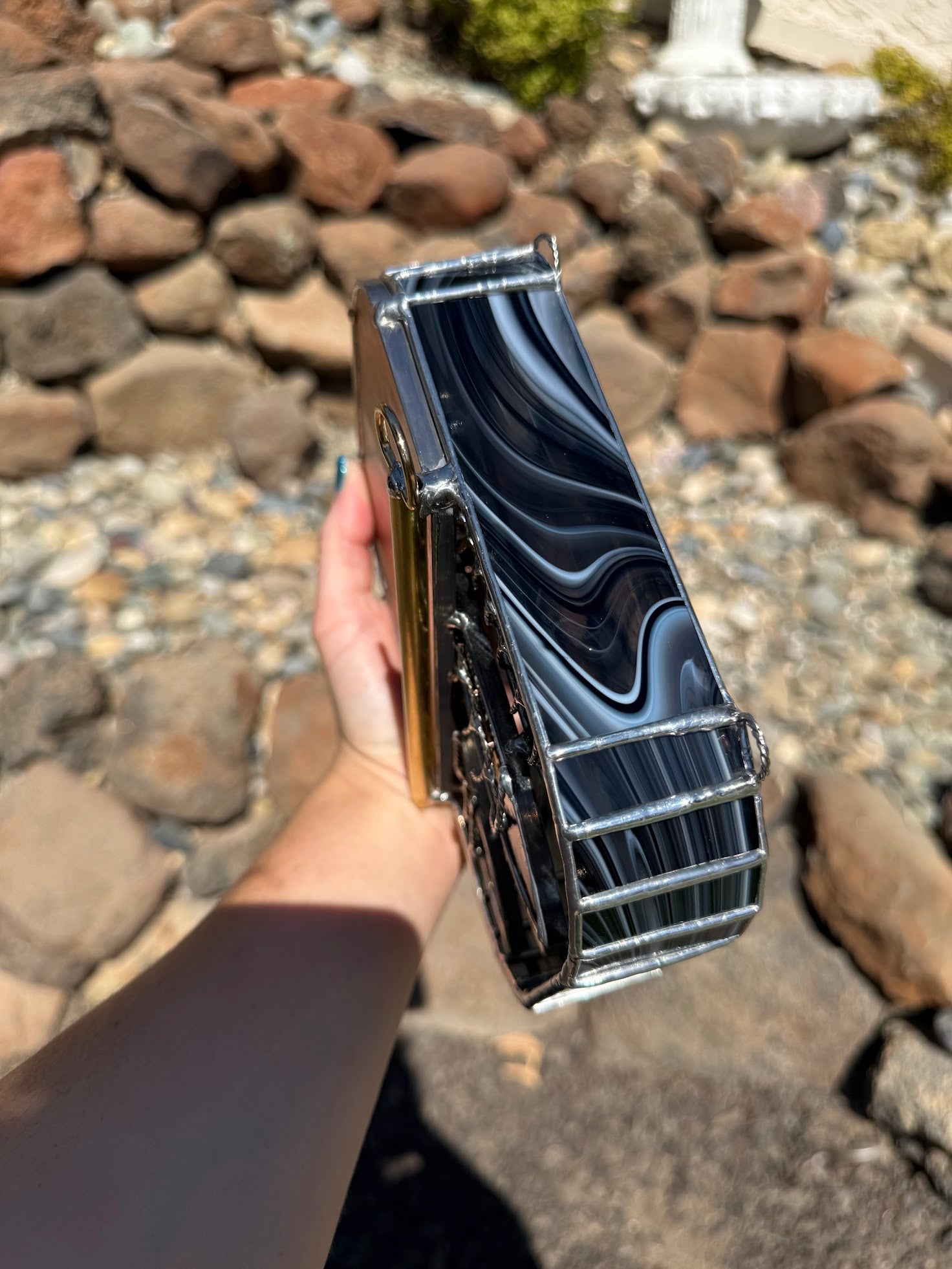 Please note: As with all stained glass pieces made using 60/40 tin/lead solder, washing your hands after handling is recommended. Lead can be harmful if ingested—this lamp is for lighting up your space, not snacking on ;)