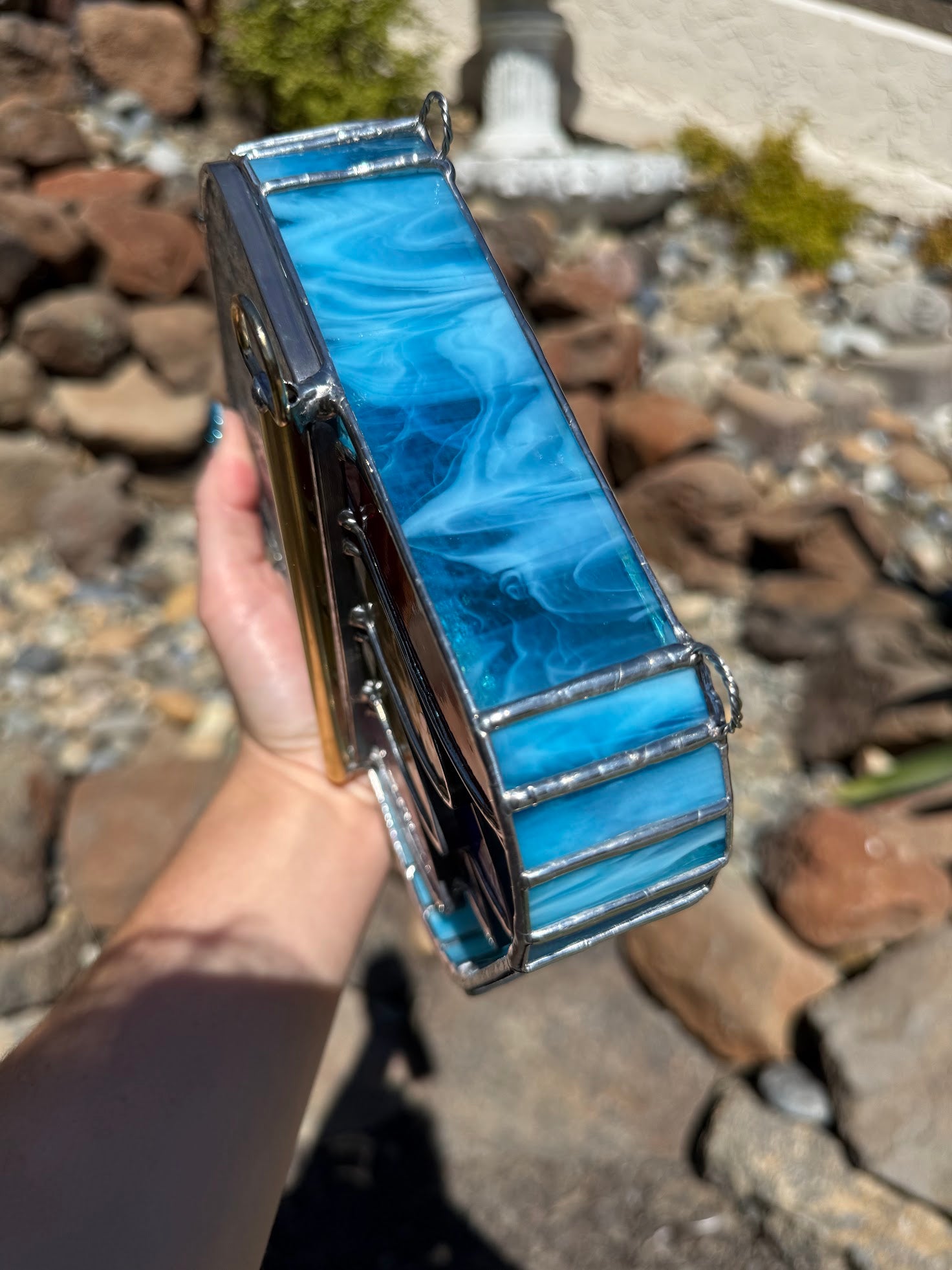 Please note: As with all stained glass pieces made using 60/40 tin/lead solder, washing your hands after handling is recommended. Lead can be harmful if ingested—this lamp is for lighting up your space, not snacking on ;)