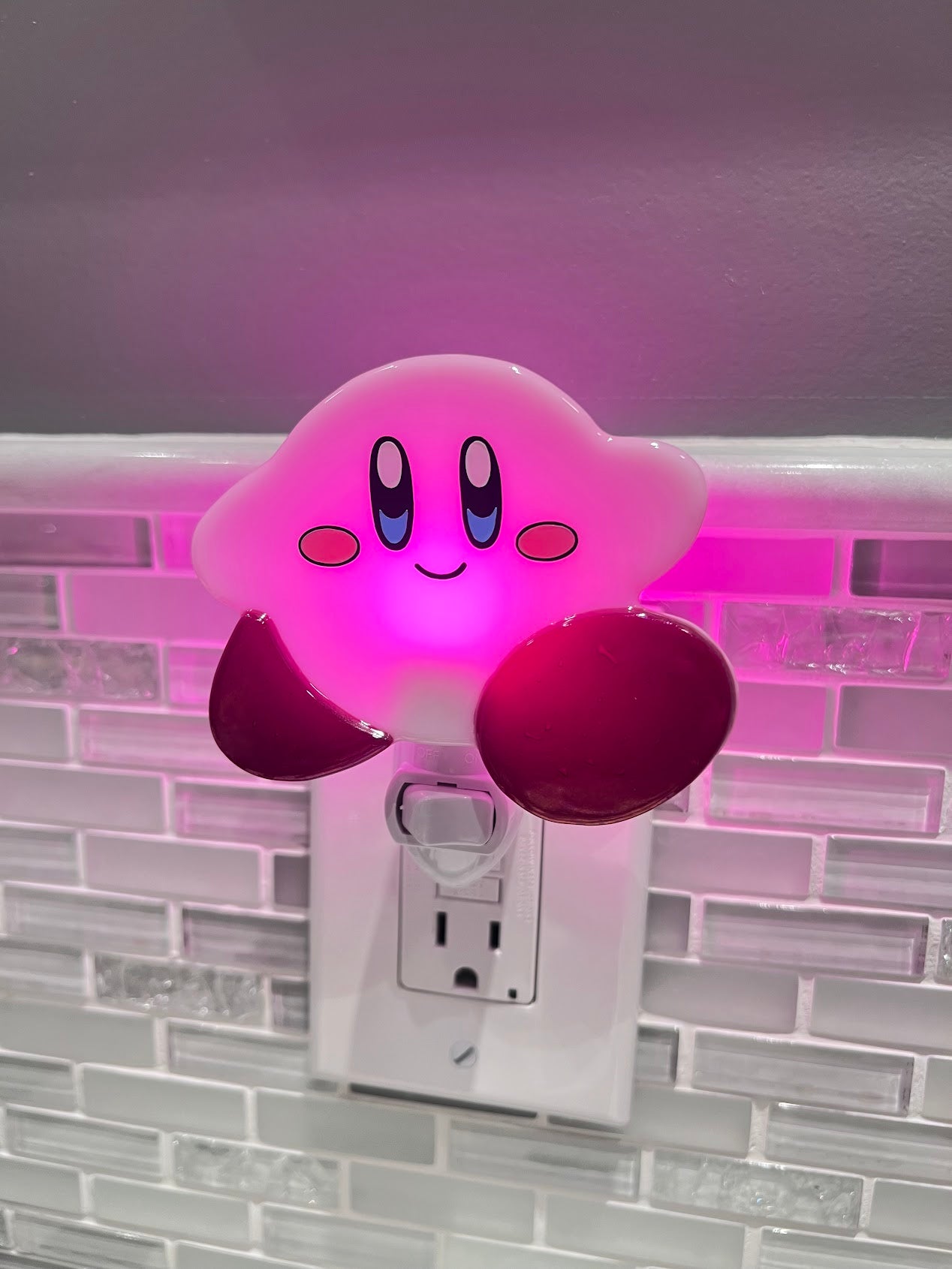 🌟✨ Transform your space into a haven of adorable enchantment with our Stained Glass Kirby Inspired Night Light! 💜 Overflowing with cuteness, this pink-colored wonder is not just a night light – it's a pocket-sized burst of joy!