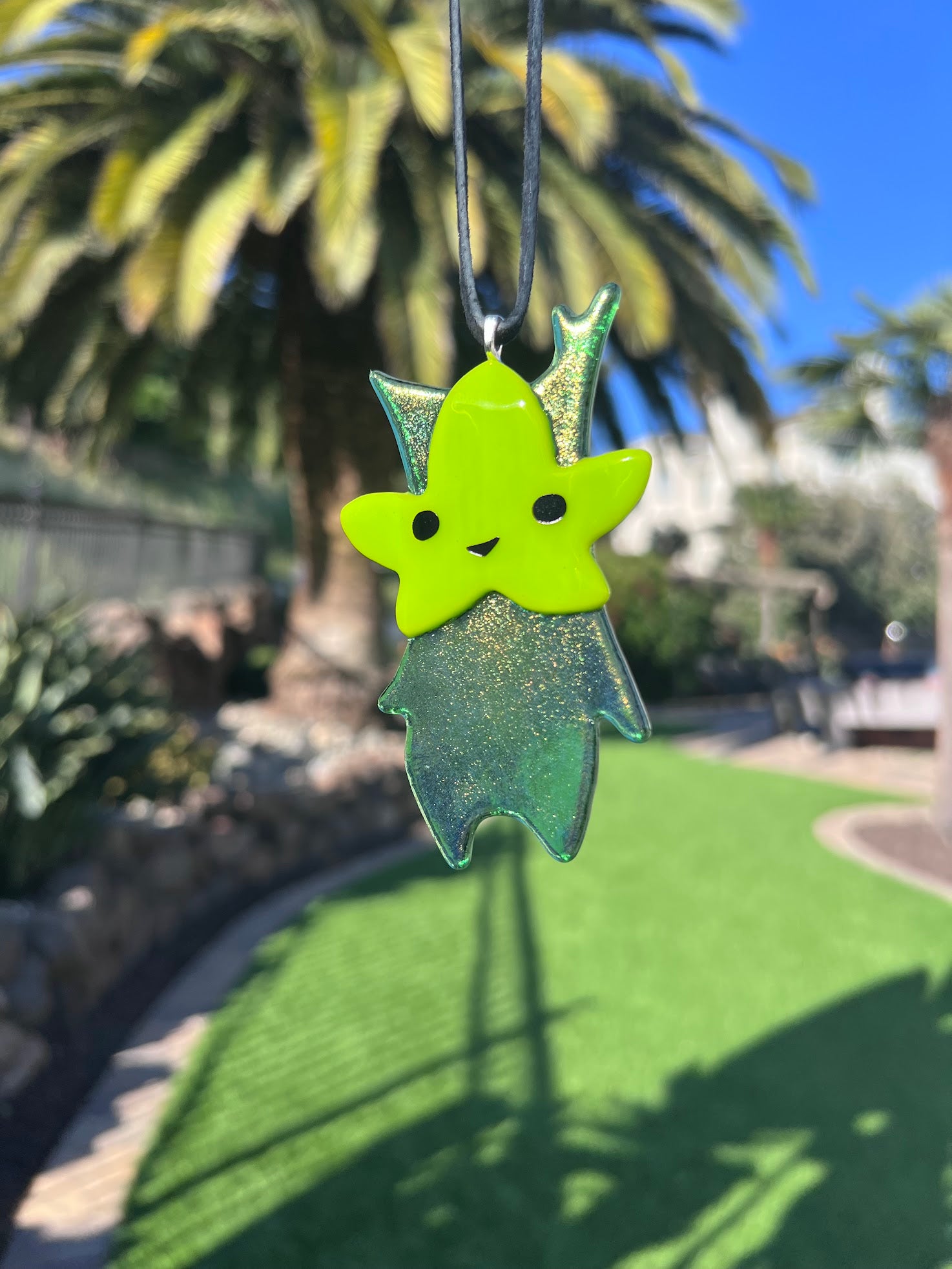 Each Korok is meticulously handmade with the use of stained glass and a kiln. Since each one is made to order and due to the natural variance in stained glass, your Korok may look slightly different from the one pictured, making it truly one-of-a-kind.